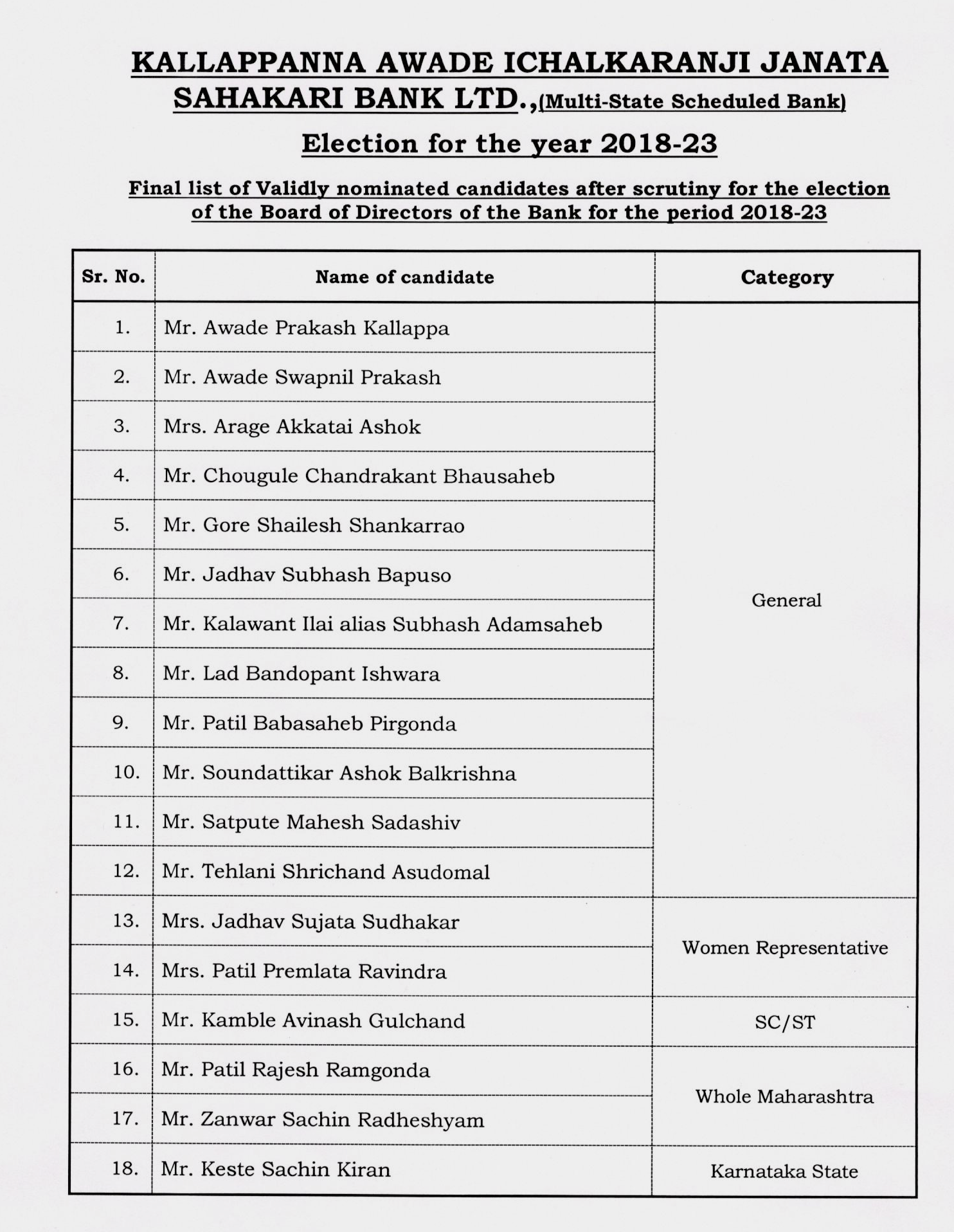 The election to the new Board of Kallappanna Awade Ichalkaranji Janata Sahakari Bank (KAIJS) is currently underway. As the outgoing Chairman who is also a Nacfub Director Dr Ashok Soundattikar cannot contest as Chairman due to it being his third term, who would be the next Chairman is a big question.