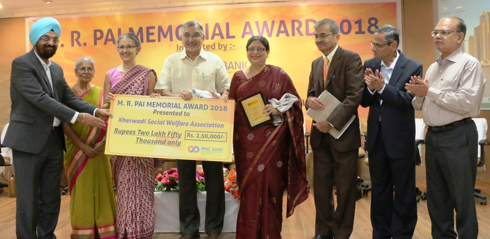 The 14th M.R.Pai Memorial Award, instituted by the Punjab and Maharashtra Cooperative Bank (PMC Bank) was bestowed on Kherwadi Social Welfare Association for its flagship program – Yuva Parivartan at Seth Walchand Hirachand Hall, 4th Floor, IMC Chamber of Commerce and Industry premises, Church gate in Mumbai last week.