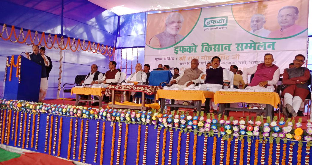 Union Minister Radha Mohan Singh –the Chief Guest for the event also inaugurated an IFFCO e-bazar on the occasion. Singh also explained to farmers about the various schemes launched by his govt which included soil-testing card, e-NAM, phasal bima and recently introduced e-haats. He exhorted them to get educated on these schemes so that they are able to reap benefits from the Modi govt initiatives.
