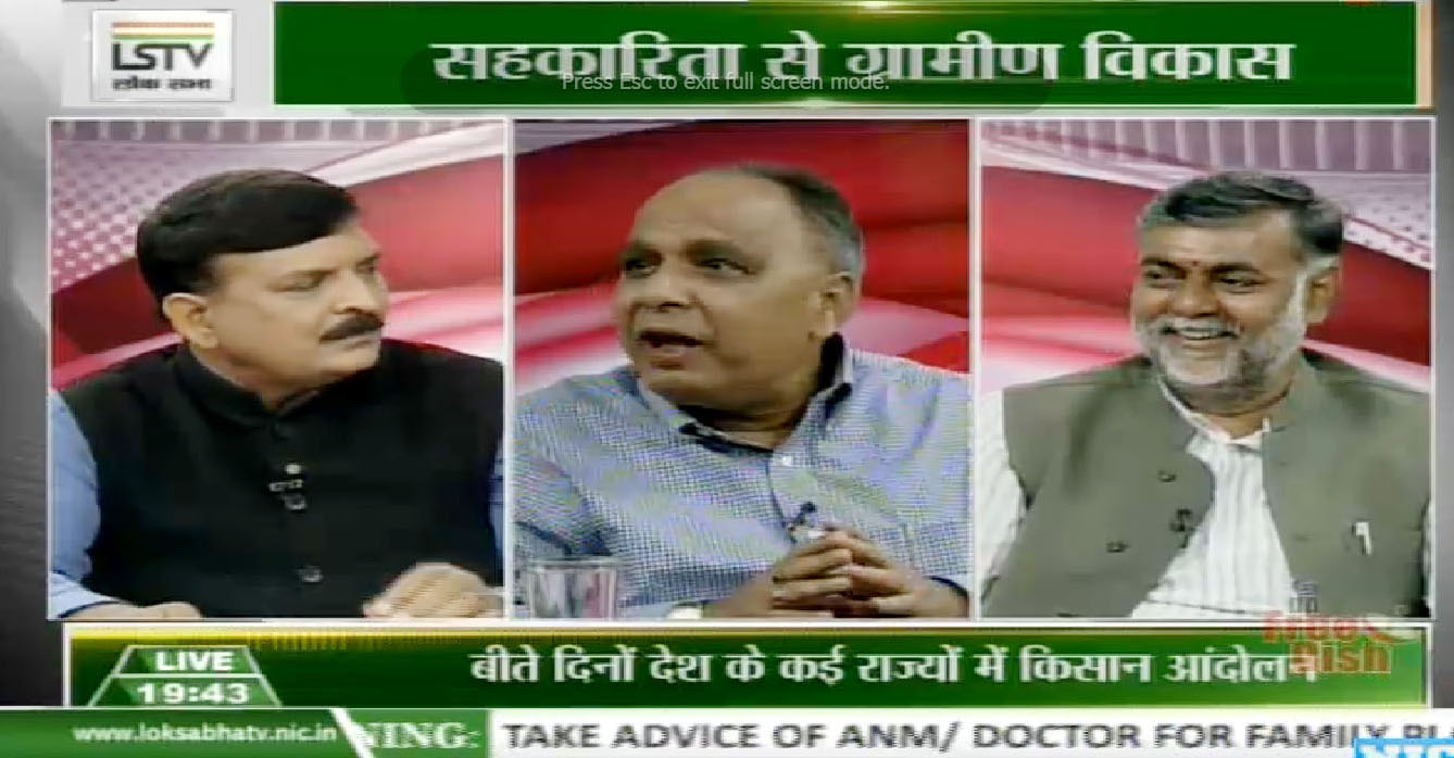Indian Cooperative represented the cooperative sector in a discussion aired live on the Lok Sabha TV Wednesday evening on the theme of rural transformation through co-operatives. The topic came into a sharp focus in the wake of the speech delivered by Prime Minister Narendra Modi on the occasion of the Laxmanrao Inamdar centenary celebrations held recently in Delhi.