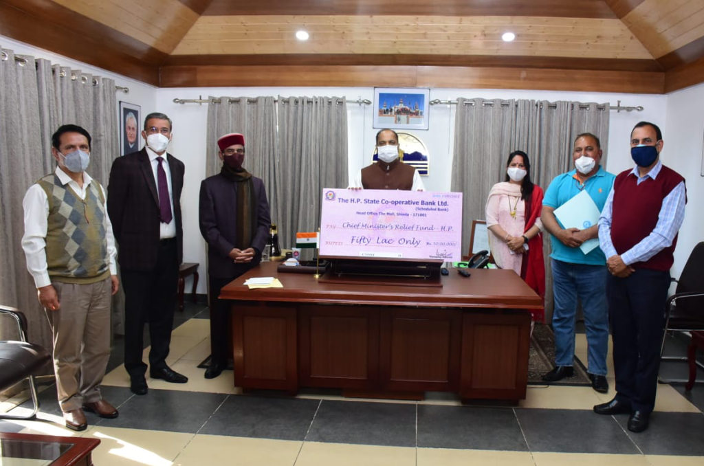 The apex bank Himachal Pradesh State Cooperative Bank has contributed generously to both the CM Relief Fund and to the HP Covid-19 Solidarity Response Fund on Tuesday in order to help the government fight against the second wave of Covid-19.