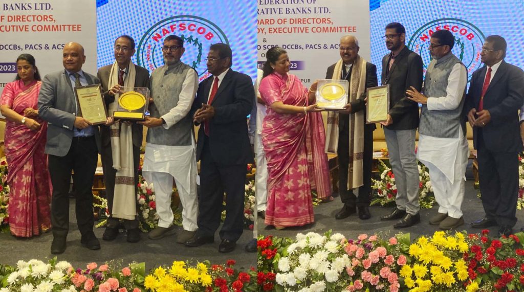 On behalf of Andhra Pradesh State Cooperative Bank, its Person-in-charge Mallela Jhansi Rani and MD Shreenath Reddy took the award from dignitaries. Whereas, from Odisha State Cooperative Bank, its Chairman Prasad Dora and its Director Ambika Prasad Das and from Telangana State Cooperative Bank, its