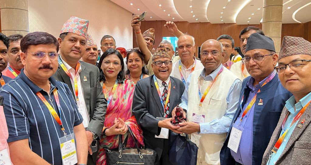 During the valedictory event of 17th Indian Cooperative Congress, the delegation from the apex body of Nepal cooperatives- Nepal Cooperative Federation (NCF) felicitated the Lok Sabha speaker Om Birla with a rudraksha beads. The event was organized on Sunday at Pragati Maidan, New Delhi.