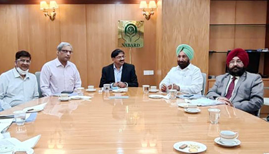 Punjab Cooperation Minister Sukhjinder Singh Randhawa met NABARD Chairman Govinda Rajulu Chintala in Mumbai in this connection.