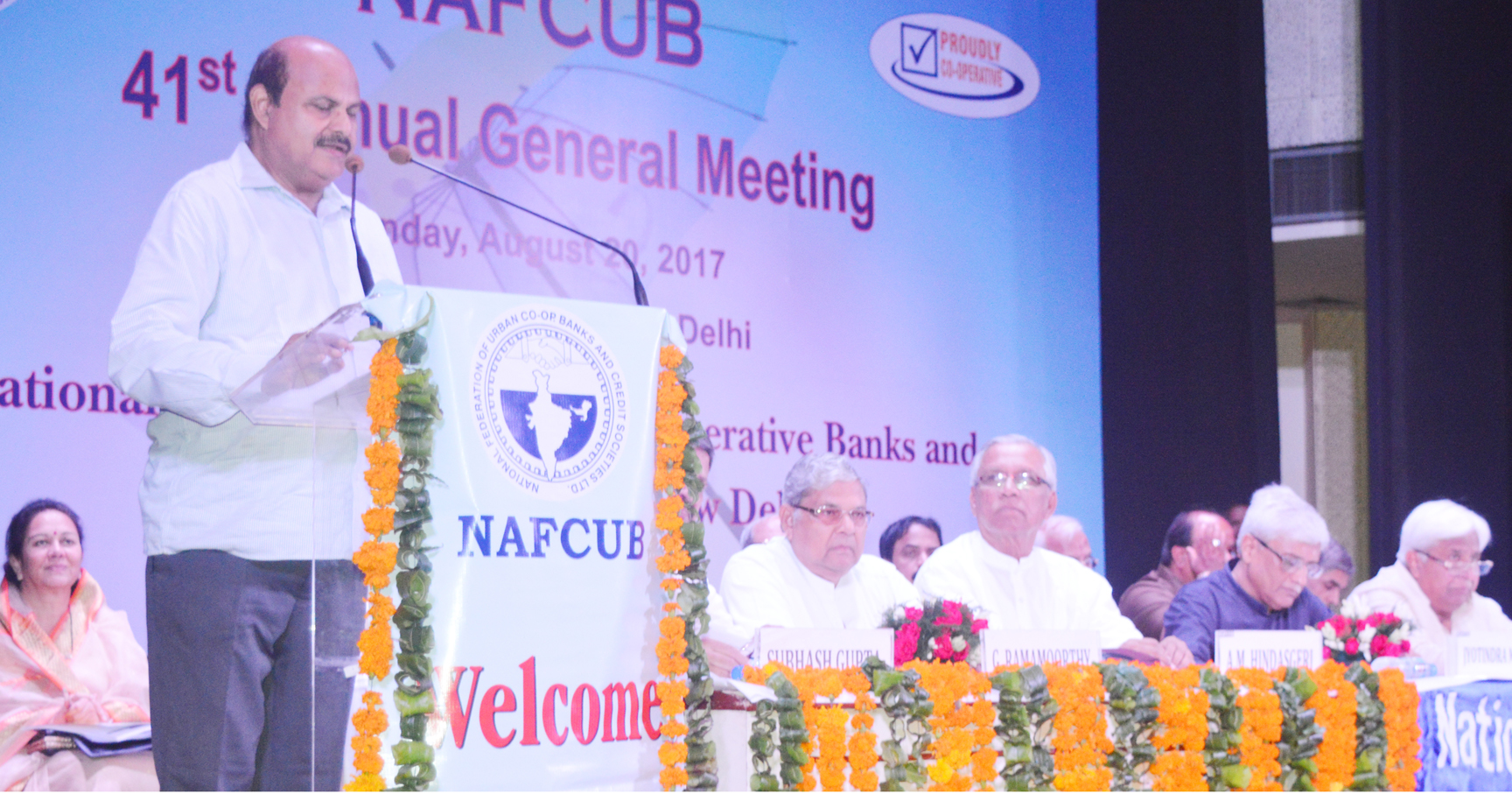 The apex body of more than 1500 urban cooperative banks in the country NAFCUB held its 41st AGM this Sunday at the NCUI auditorium in Delhi. While its Vice-President R B Shandilya was happy to inform an increase in the profit of the Federation he had no words to offer on the current impasse in the Federation. Presently, the cooperative body is without a head.