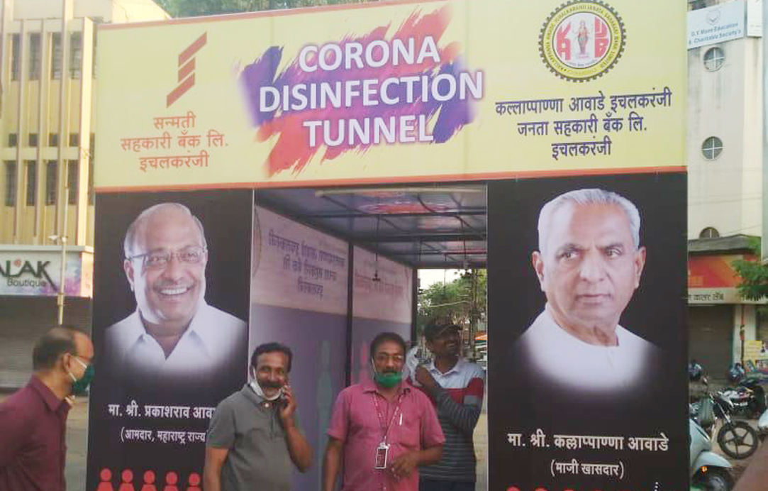 Maharashtra based Kallappanna Awade Ichalkaranji Janata Sahakari (Kaijs) Bank in association with Sanmati Sahakari Bank has installed a ‘disinfection tunnel’ at Janata Bank Chowk, Ichalkaranji to prevent further spread of the coronavirus.