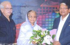 Krishnakumar Goyal welcomed Mrs. Patil with a bouquet. Dr. Mukund Abhyankar informed Mrs. Patil about the new corporate office – Cosmos Tower & the progress of the Bank. Mrs. Patil was also informed about the recently launched new logo of Cosmos Bank.