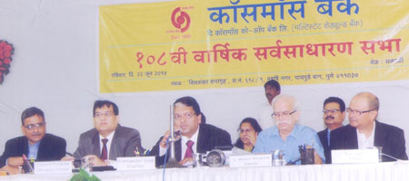 The 108th Annual General Meeting (AGM) of the Bank was conducted on Sunday, June, 22nd 2014 in Pune. The Chairman of the Bank, Mr. Krishnakumar Goyal shared financial statistics  with the shareholders on this occasion. Members of the Bank were present for the meeting in large numbers. The Directors of the bank with other senior officials were present too.