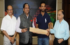 Prominent Indian Cricket Player, Ajinkya Rahane paid a courtesy visit to Cosmos Bank’s Corporate Office in Pune Cosmos Tower last week. During this visit he gifted a bat with his best wishes and autograph on it. Well-known sports journalist, Sunandan Lele was present on this occasion.
