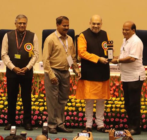Maharashtra’s leading bank- Karad Urban Cooperative Bank Chairman Dr Subhash Erram and CEO CA Dilip M. Gurav received the award from the Union Home and Cooperative Minister on behalf of the bank.