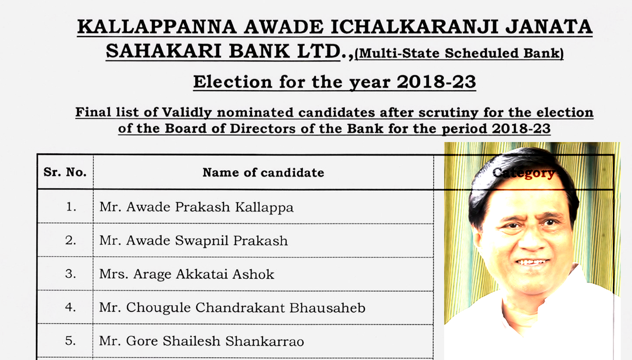 The election to the new Board of Kallappanna Awade Ichalkaranji Janata Sahakari Bank (KAIJS) is currently underway. As the outgoing Chairman who is also a Nacfub Director Dr Ashok Soundattikar cannot contest as Chairman due to it being his third term, who would be the next Chairman is a big question.
