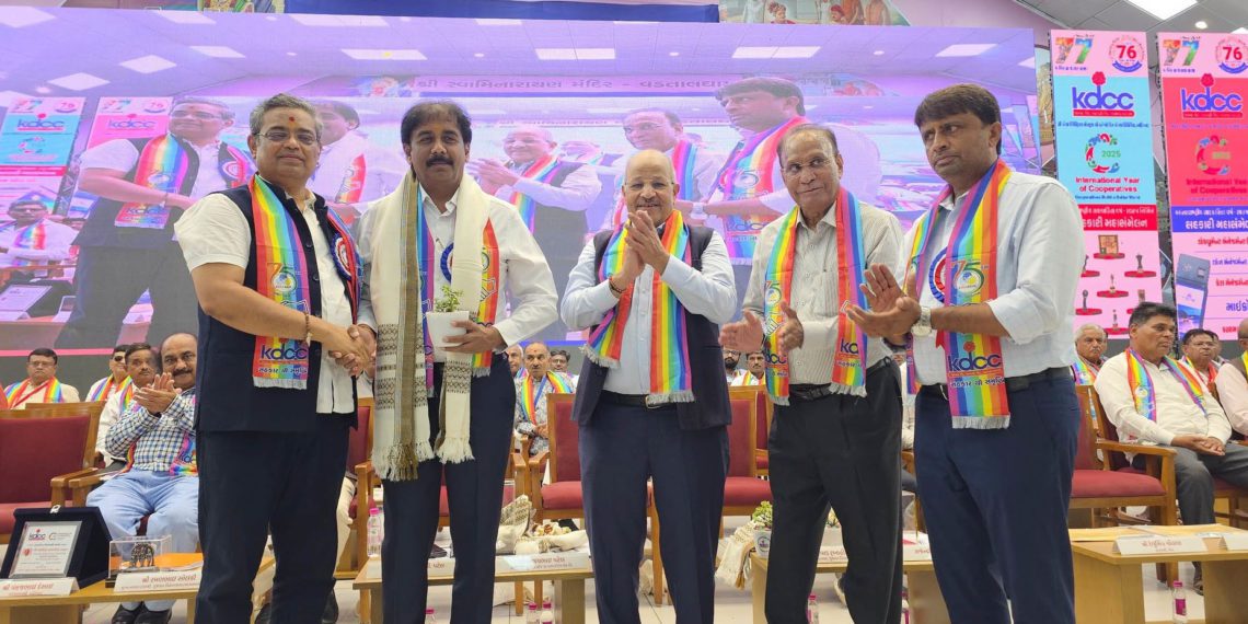 The event also honored former Amul Dairy Chairman Ramsinh Parmar and former KDCC Bank Chairman Dhirubhai Chavda with the Sahakari Shiromani Puraskar 2025.