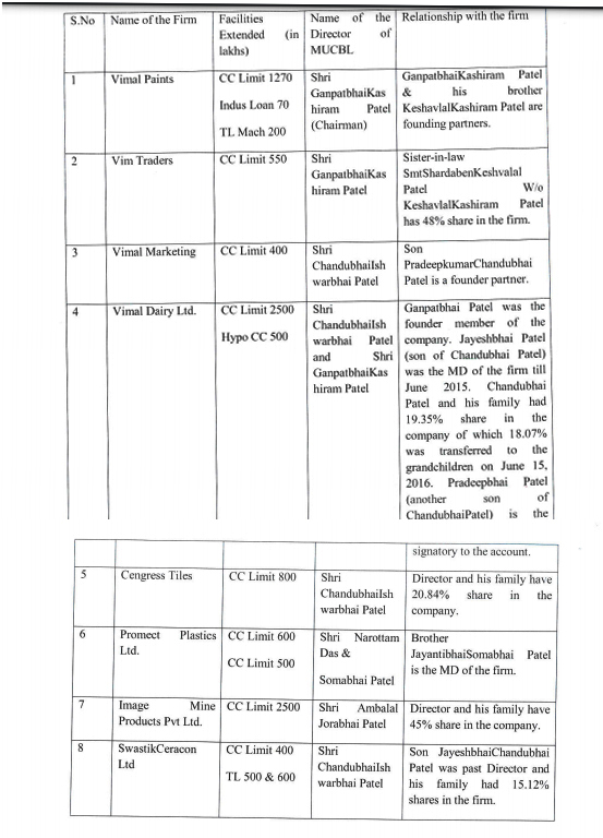 The list includes the name of eight firms which are associated with the bank’s Chairman Ganpatbhai Patel, director Chandubhai Patel, Narottambhai Patel, Somabhai Patel and Ambalal Patel.