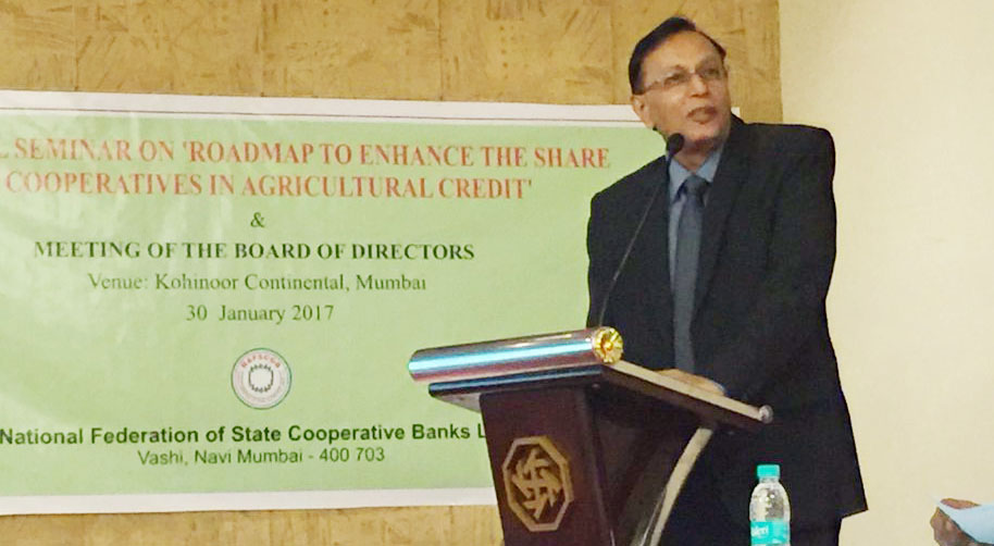 Cooperative banks need to accelerate towards bringing PACS Societies on technology platform and adopt RuPay credit card facility. Because of lack of professionalism and improper governance, cooperatives are not moving ahead, said NABARD Chairman Dr H K Bhanwala who was invited as the chief guest during the National Seminar on “Roadmap to enhance the share of cooperatives in Agriculture credit” organized by the apex body of state cooperative banks NAFSCOB in Mumbai on Monday.