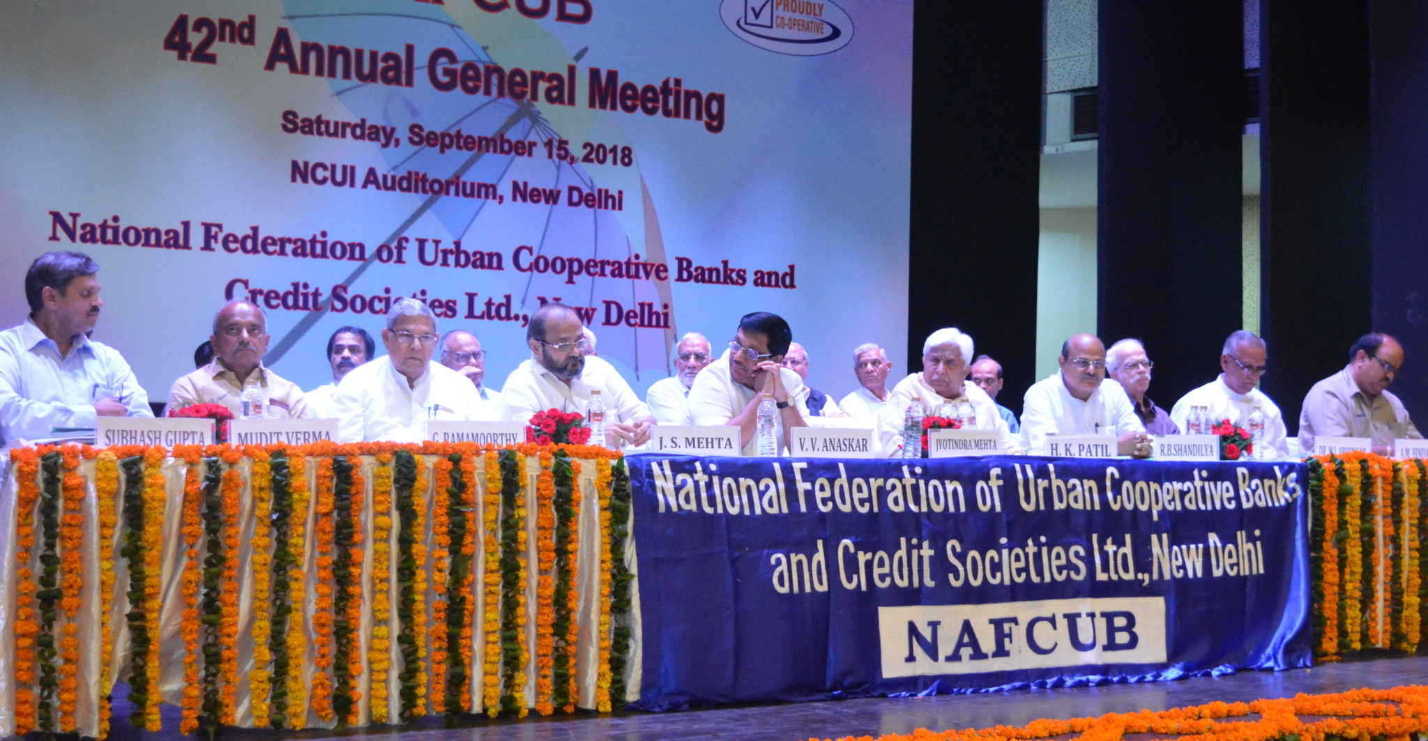 It was after two years that the apex body of urban co-op banks and credit co-ops NAFCUB could hold its AGM with a regular President and with a relieved assembly of members who had come from various parts of the country to hear their leaders speak on the future of co-ops.