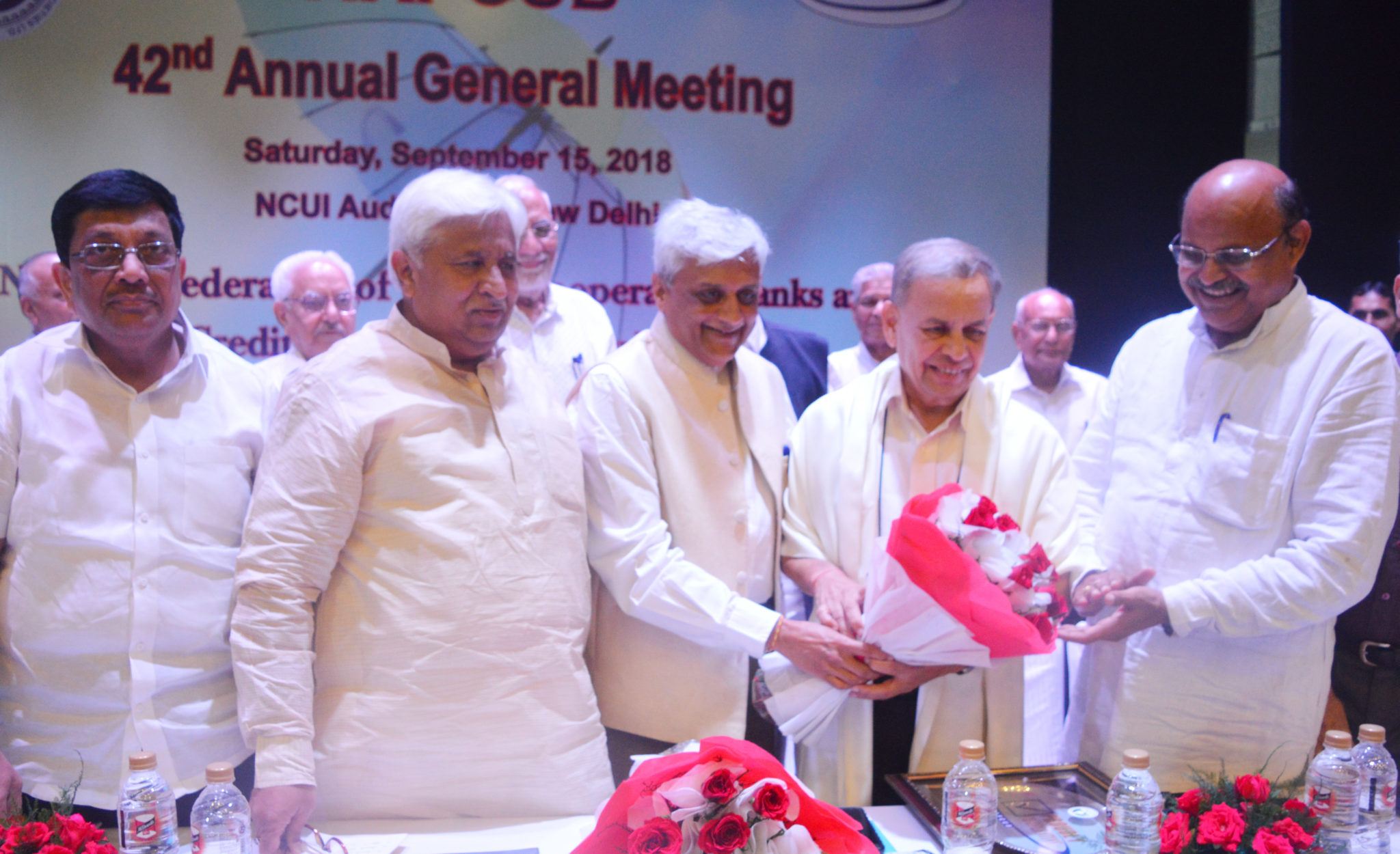 Jyotindra Mehta, who was restored as the president of NAFCUB during the Friday Board meeting (after a favourable Arbitrator’s award) was a bundle of confidence. He presided over the 42nd AGM with elan and poise at the NCUI Auditorium in New Delhi on Saturday.