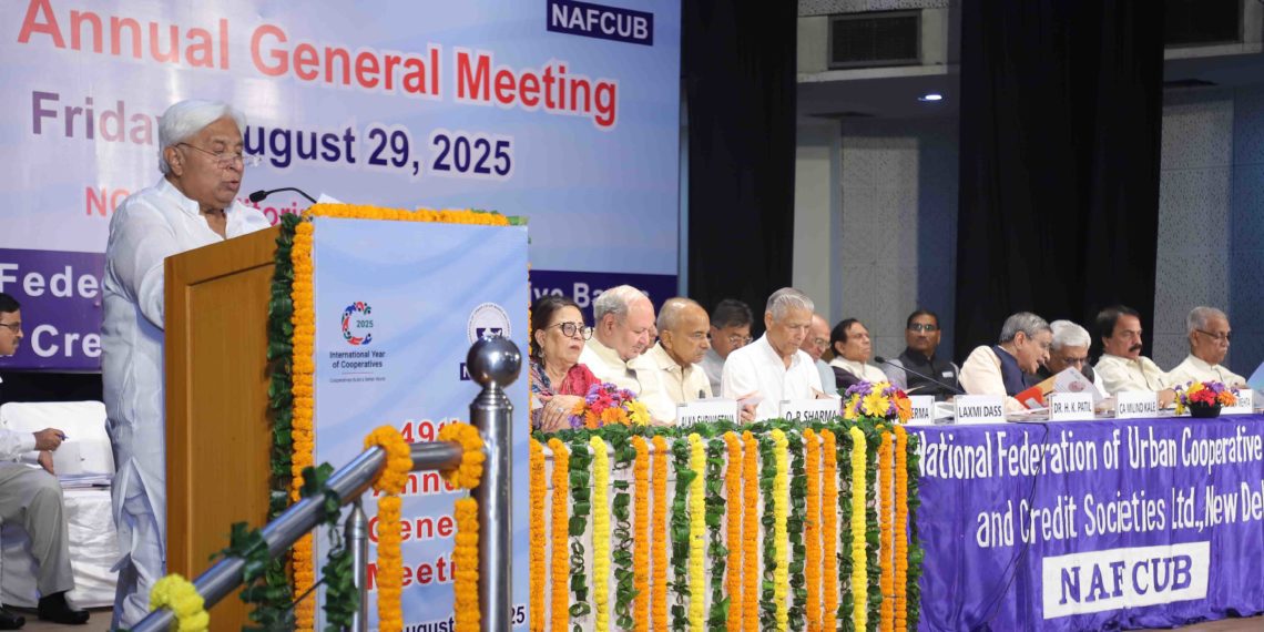 Addressing the 49th Annual General Meeting of NAFCUB, Chairman Emeritus Dr. H.K. Patil emphasized the need for unity, modernization, and professionalism in the urban cooperative banking sector. He hailed 2025 as a significant year for cooperatives, with the United Nations declaring it the International Year of Cooperatives (IYC) under the theme “Cooperatives build a better world.”