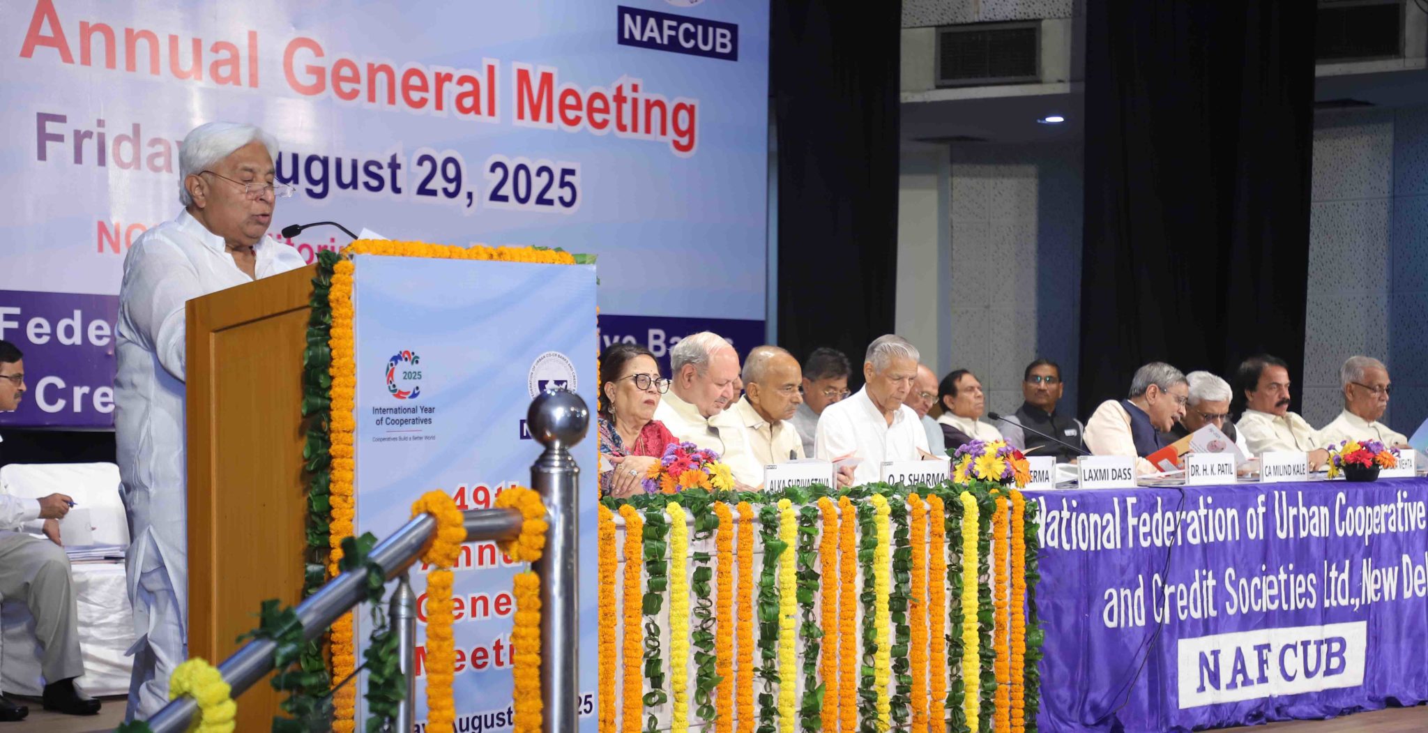 Addressing the 49th Annual General Meeting of NAFCUB, Chairman Emeritus Dr. H.K. Patil emphasized the need for unity, modernization, and professionalism in the urban cooperative banking sector. He hailed 2025 as a significant year for cooperatives, with the United Nations declaring it the International Year of Cooperatives (IYC) under the theme “Cooperatives build a better world.”