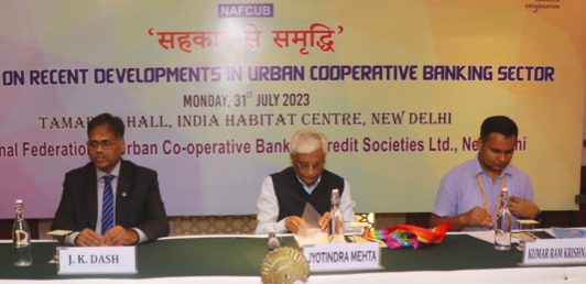 In his opening remarks, Jyotindra Mehta, President NAFCUB thanked the Ministry of Corporation for its support as well as RBI for its positive response in resolving the matters of key concern of UCBs. Mehta appreciated them for sector friendly branch licensing policy, easing timelines of achieving Priority Sector Lending targets and other norms, making applicable new comprehensive compromise write-off settlement guidelines to UCBs also along with graded CRAR policies.