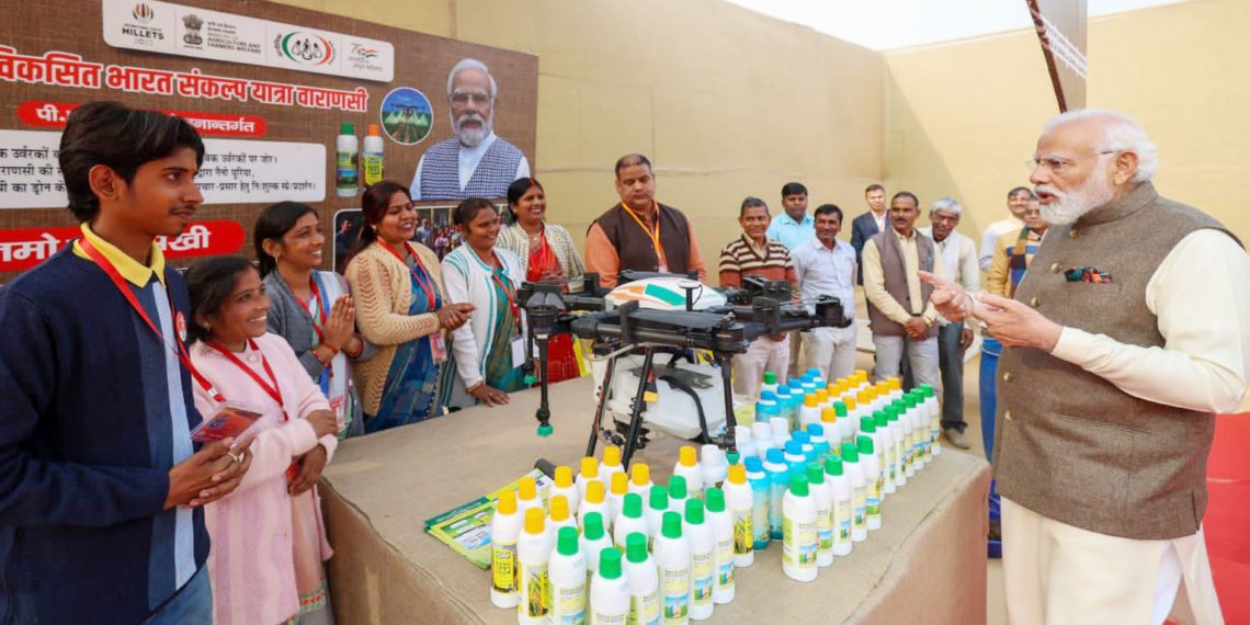 Modi visited Vikas Bharat Sankalp Yatra campaign in Village Barki, Block Sewapuri in Varanasi. Earlier, he laid the foundation stone and dedicated to the nation multiple development projects worth over Rs 19,150 crores in Varanasi.