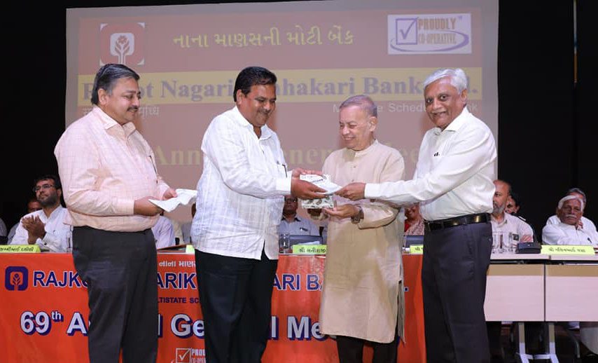 Gujarat based Rajkot Nagarik Sahakari Bank organized its 68th Annual General Meeting last week, in which RBI Central Board Director Satish Marathe and RSS Kshetriya Karyavaha of Goa, Maharashtra & Gujarat Balasaheb Chaudhary were the guests of honour on this occasion.