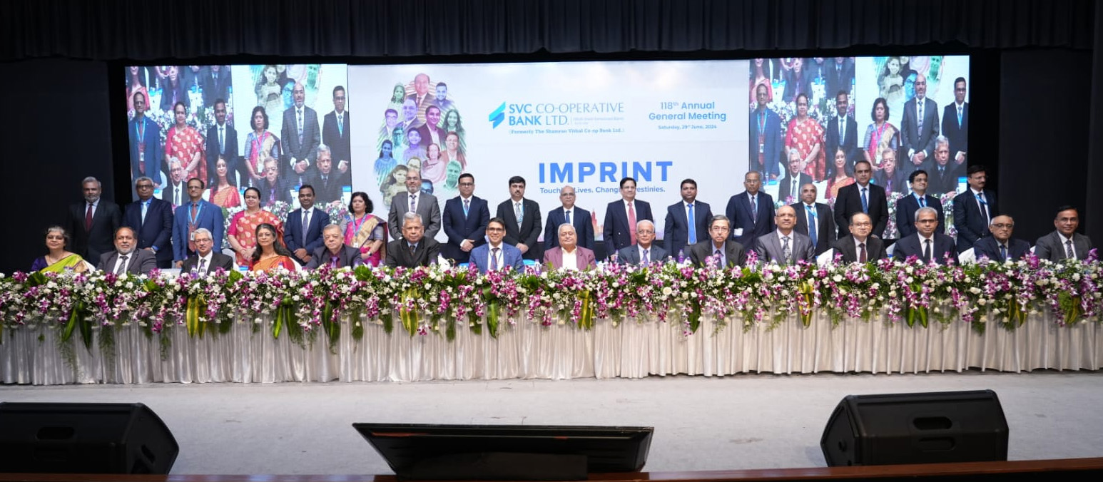 One of the largest urban cooperative banks of India-SVC Cooperative Bank organized its 118th Annual General Meeting on Saturday at Mumbai and announced a 15 percent dividend for its more than 1.86 lakh shareholders for FY 2023-24.