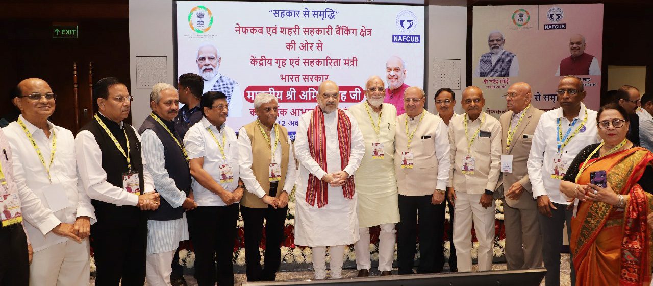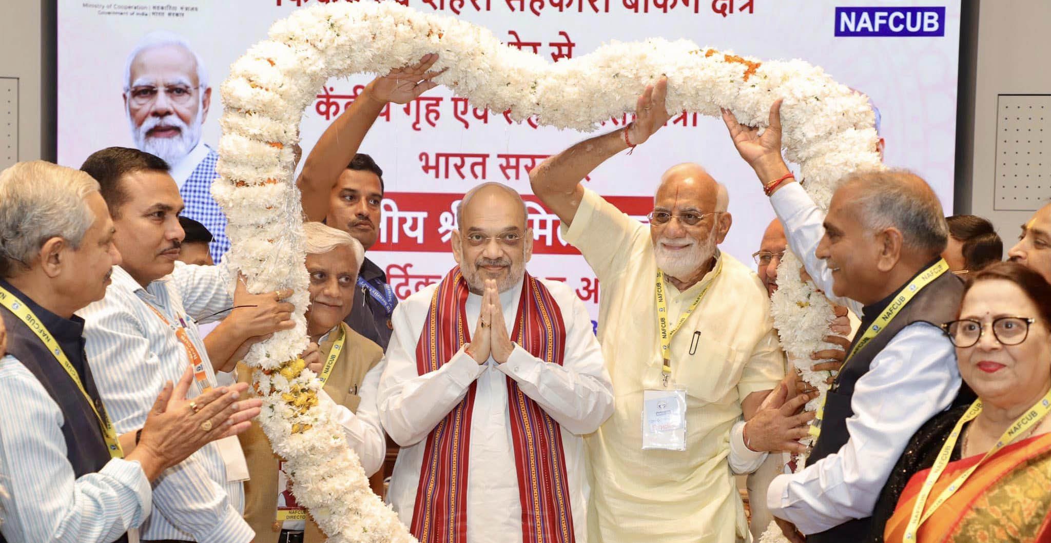 The felicitation of Shah took place in Bharat Mandapam in New Delhi on Thursday evening. More than 155 leaders from 15 states had come from across the nation to greet Shah on this occasion. Several UCB Chairmen including Saraswat Cooperative Bank Chairman Gautam Thakur, Cosmos Cooperative Bank Chairman Milind Kale and SVC Cooperative Bank Vice-Chairman Arun D. Mavinkurve got an opportunity to felicitate Shah separately as well.