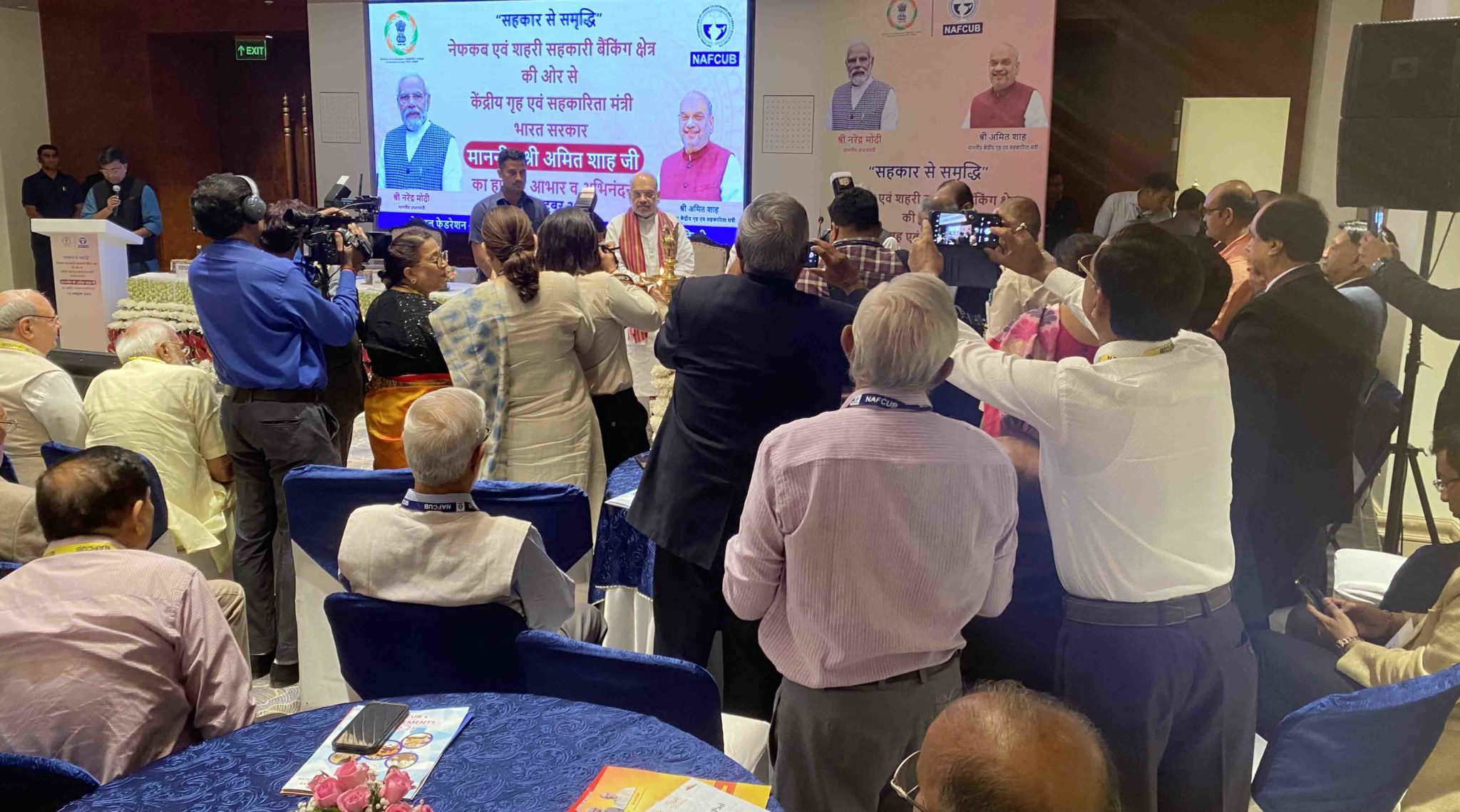 Nafcub Vice President Vidyadhar Anaskar proposed a vote of thanks. He said that he has been working in the sector for the last 35 years but it is perhaps the first time that he does not feel sheepish about it and declares with pride that he is working with co-ops. “It was all possible due to you”, said Anaskar thanking Shah profusely from the dais.