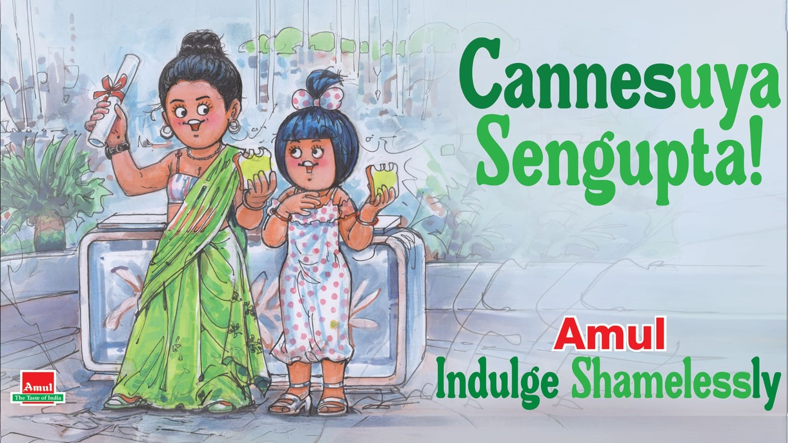 Amul celebrated Anasuya Sengupta’s achievement with a tribute post. Featured along with the Amul girl, Ansuya is seen holding a bottle of Amul milk with the slogan “Cannesuya Sengupta”.