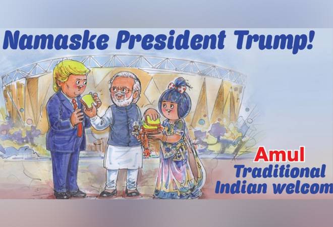 Amul doodle on Trump visit is provoing to be a big hit on social media. Its caption reads, “Hon. President of USA visits Ahmedabad.”