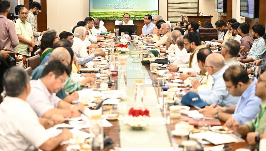 A high-level meeting on arecanut development was held at Krishi Bhavan, New Delhi, under the chairmanship of Union Agriculture & Farmers’ Welfare Minister Shivraj Singh Chouhan. The meeting brought together Union Ministers H. D. Kumaraswamy and Pralhad Joshi, Ministers of State, MPs from areca nut–producing regions, and senior officials from multiple ministries.