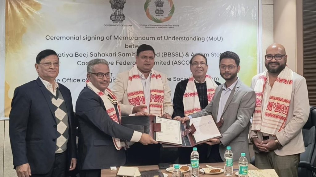 In a significant move to strengthen the cooperative ecosystem and improve access to quality agricultural inputs, the Assam State Cooperative Federation (ASCOF) and Bharatiya Beej Sahakari Samiti Limited (BBSSL) signed a Memorandum of Understanding (MoU) on Monday at Khanapara in Guwahati.