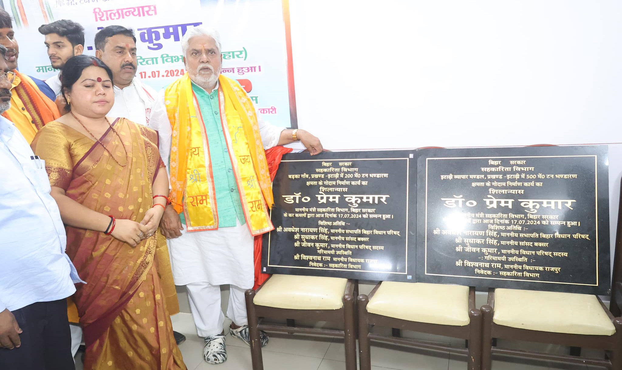 Bihar Cooperation Minister Dr Prem Kumar laid the foundation stone for the construction of 200 MT and 500 MT capacity warehouses in two PACS of Buxar district on Wednesday.