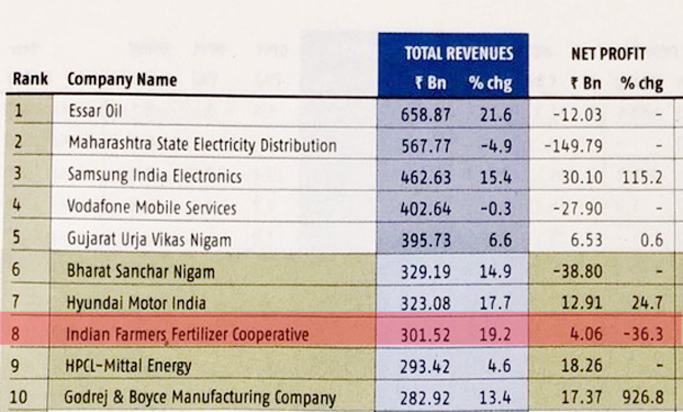 Those ranked above IFFCO included BSNL, Gujarat Urja Vikas Nigam, Huyndai Motors and others. Last year IFFCO got the 7th position in the list of unlisted companies.
