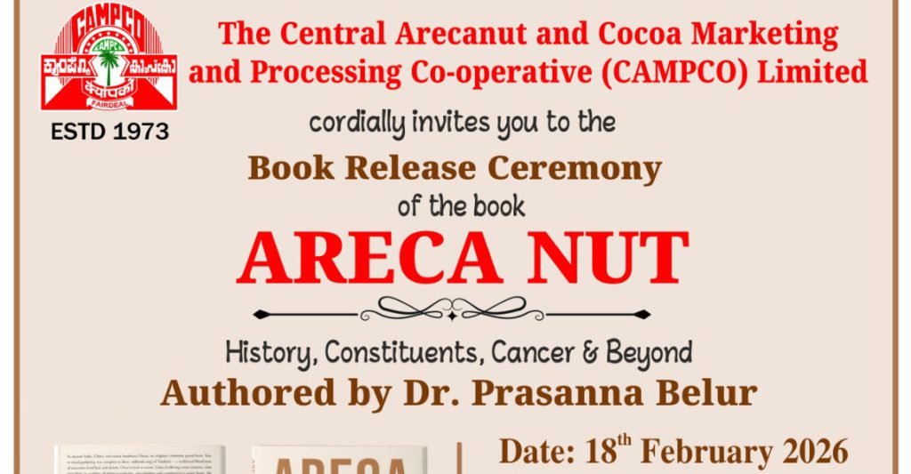 The Central Arecanut and Cocoa Marketing and Processing Co-operative Limited (CAMPCO) will host the release of a new book titled ARECA NUT – History, Constituents, Cancer & Beyond on Wednesday at its head office in the city.