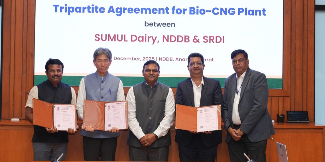 In a significant step towards clean energy and circular economy, SUMUL Dairy has signed a tripartite agreement with the National Dairy Development Board (NDDB) and Suzuki R&D Center India Private Limited to set up a 75 metric tonnes per day (MTPD) dung-based Compressed Biogas (CBG) plant.