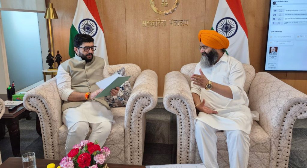Chandigarh State Cooperative Bank Chairman Satinder Pal Singh Sidhu met Union Minister of State for Cooperation Murlidhar Mohol on Monday to discuss pressing issues concerning Primary Agricultural Credit Societies (PACS), rural development, and the role of Central and State Cooperative Banks (CSCBs) in strengthening India’s cooperative framework.