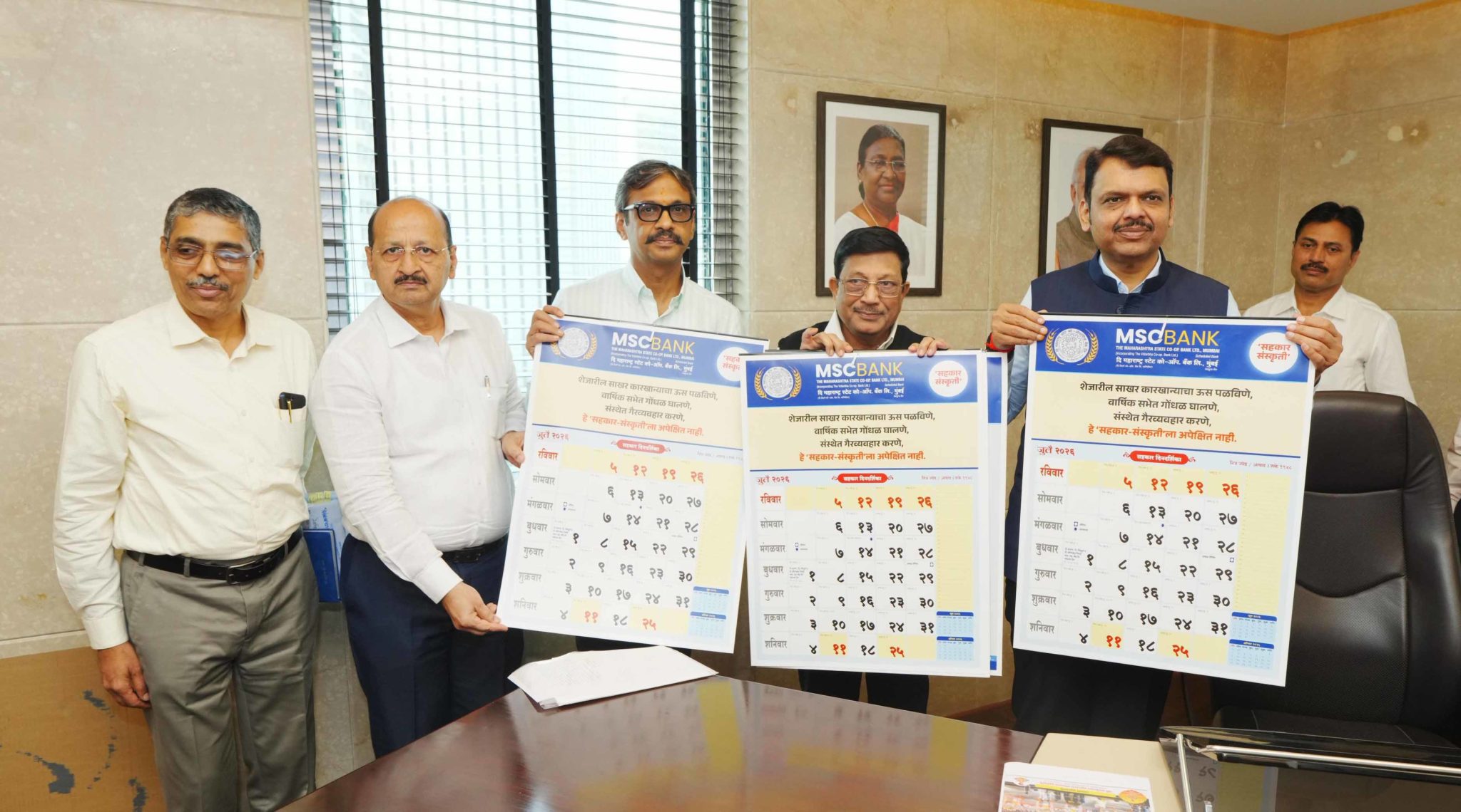Maharashtra Chief Minister Shri Devendra Fadnavis on Wednesday unveiled the 2026 calendar of the Maharashtra State Cooperative (MSC) Bank, themed ‘Cooperative Culture’, at his office in Mantralaya.