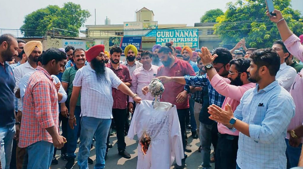 Protesters chanted slogans and burned an effigy of Punjab Chief Minister Bhagwant Mann. Sukhjit Singh, state president of the Cooperative Employees Union, and Ankur Sharma, president of the Punjab State Cooperative Inspectors Association, claimed that Singh was wrongfully targeted in a case involving five employees.
