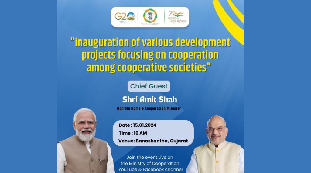 Union Home and Cooperation Minister Amit Shah will inaugurate various development projects focusing on cooperation between cooperative societies at Banaskantha, Gujarat on 15th January 2023 i.e. today.