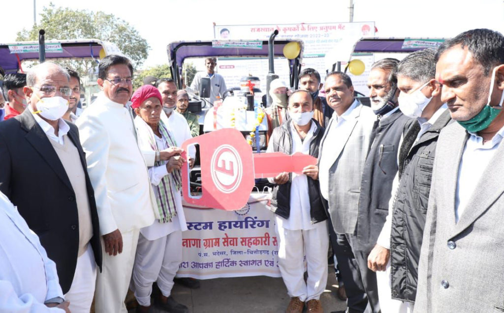 In a function organized at the Rajasthan-based Nimbahera Krishi Mandi Complex last week, the state cooperative Minister had given tractors and other agricultural inputs to 14 village-level service cooperative societies under the Custom Hiring Scheme.