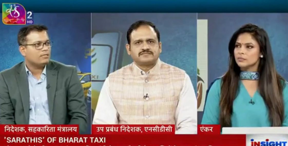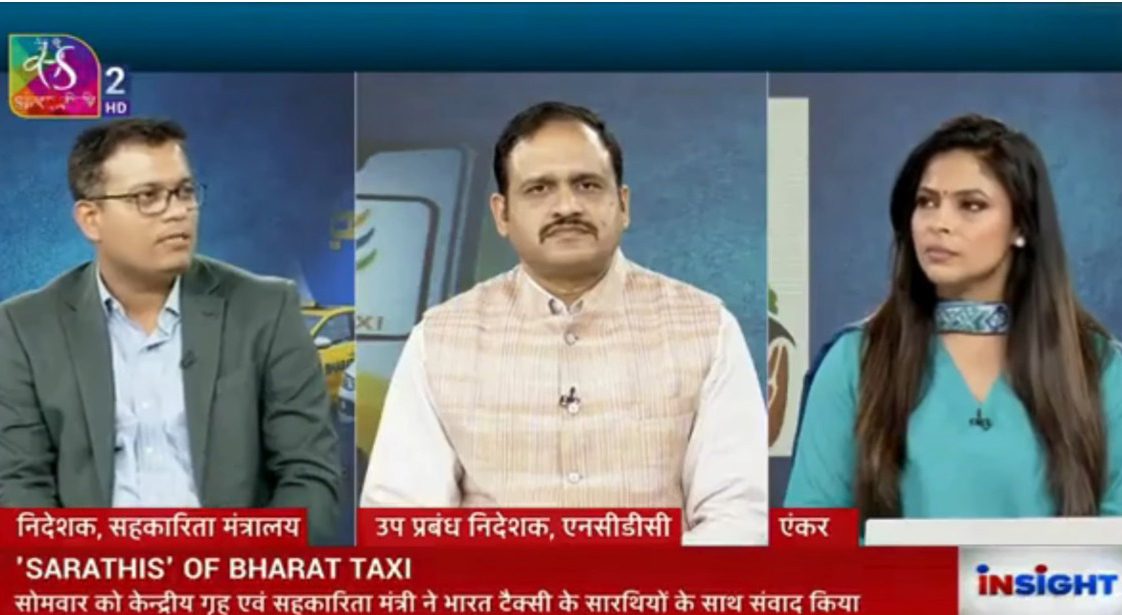 A special discussion on the cooperative model of Bharat Taxi was featured on Sansad TV, highlighting its role in strengthening driver-led entrepreneurship in India’s taxi sector.