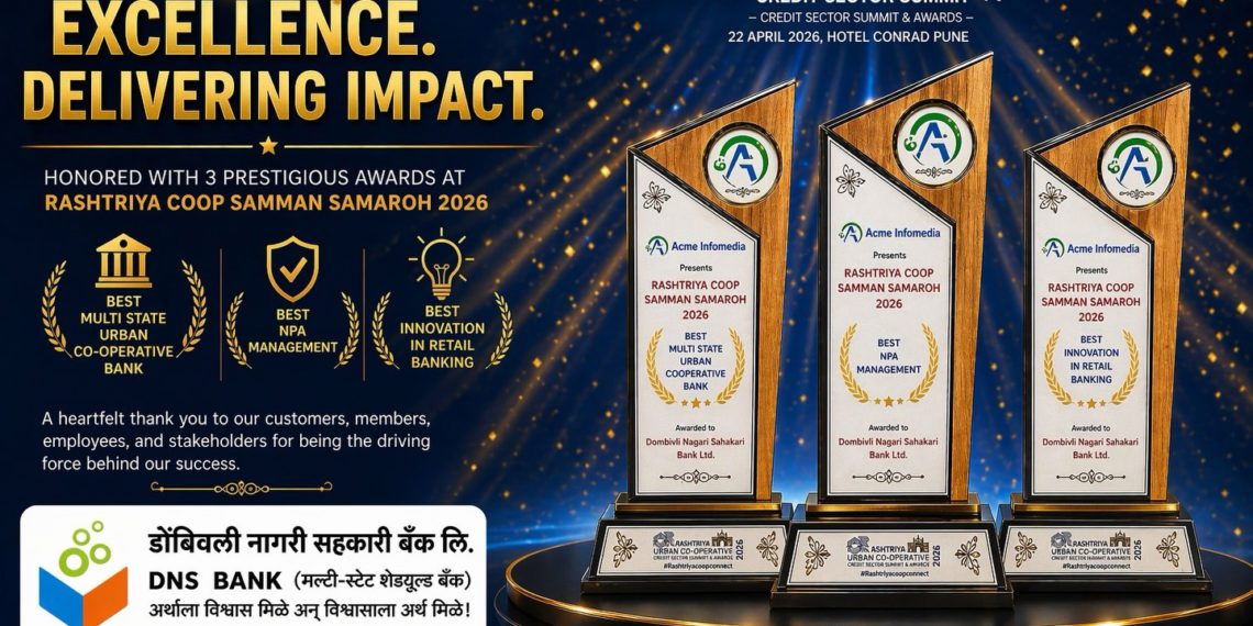 Dombivli Nagari Sahakari Bank emerged as a standout performer at the 3rd National Urban Cooperative Banking Summit held in Pune, clinching three major awards that underscore its leadership in the sector.