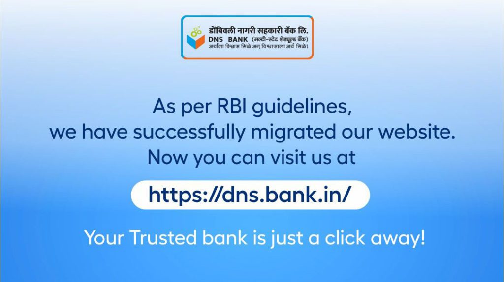 In compliance with the Reserve Bank of India’s (RBI) recent directive to all banks, Dombivli Nagari Sahakari Bank Ltd. (DNS Bank) has updated its official website address to https://dns.bank.in/ from the earlier https://dnsbank.in/