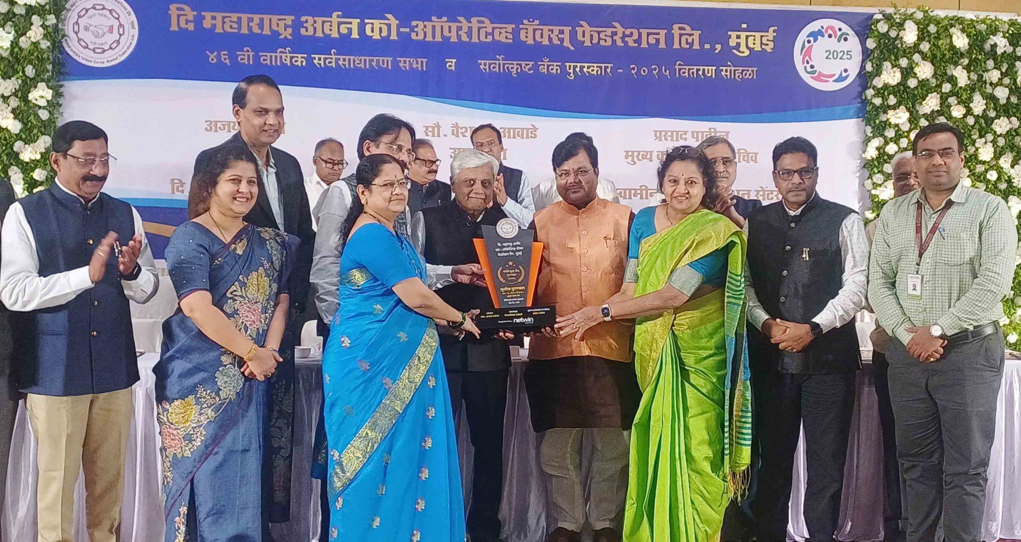 This recognition was conferred at the Annual General Meeting and Award Ceremony of the Maharashtra Urban Co-Operative Banks Federation Ltd., held on 13th September 2025 at the Shree Swaminarayan Convention Center, Nashik.