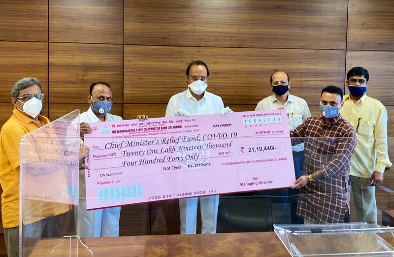 Maharashtra State Cooperative (MSC) bank has donated a cheque of Rs 21.19 lakh towards the CM relief fund on Wednesday in order to help state government fight against the coronavirus. The whole amount was contributed by the bank employees from their one day’s salary.