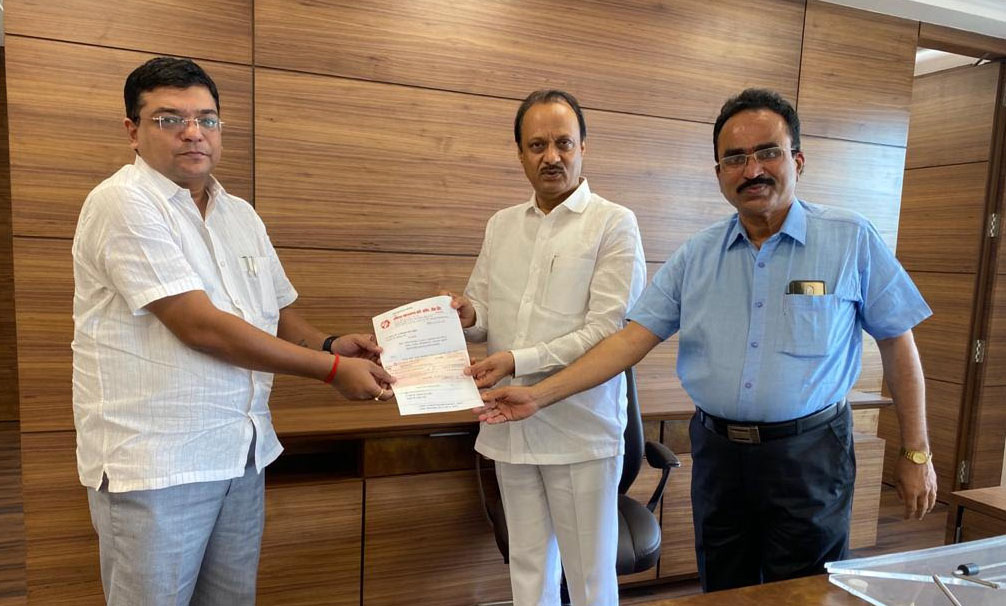 The Bank Chairman Uday Shelke and its Managing Director Manjunatha T Kanchan personally handed over a cheque of Rs 35 lakh to Maharashtra Deputy Chief Minister Ajit Pawar at his office in Mumbai.