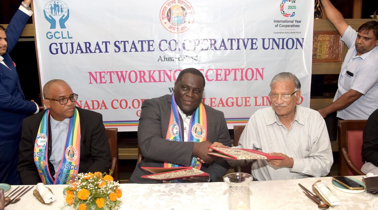In a major step towards international cooperative collaboration, G H Amin, Chairman of the Gujarat State Co-operative Union, and Dennison Slocombe, Business Executive of the Grenada Co-operative League Limited (GCLL), West Indies, signed a Memorandum of Understanding (MoU) to provide education, training, and support for the development of cooperative activities in Grenada.