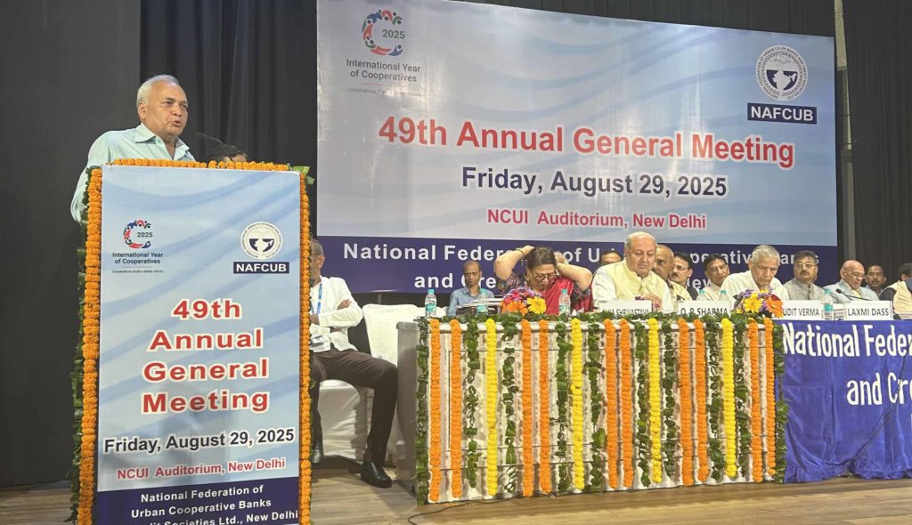 At the 49th Annual General Meeting of NAFCUB, Anil Kumar Singh, delegate from Gulshan Mercantile Cooperative Bank, urged the apex body to actively take up issues faced by smaller Urban Cooperative Banks (UCBs).
