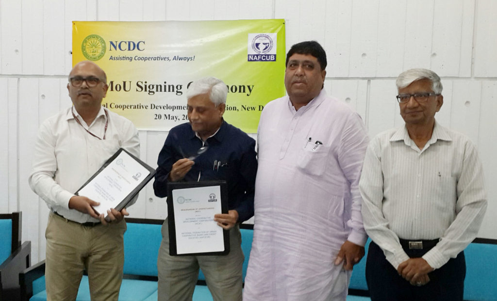 National Federation of Urban Cooperative Banks and Credit Societies Ltd., New Delhi (NAFCUB) as part of expanding its outreach in the field of capacity building and research and development activities in the urban cooperative banking sector signed Memorandum of Understanding (MOU) with National Cooperative Development Corporation, New Delhi (NCDC) on 20-05-2019 at NCDC Office, New Delhi
